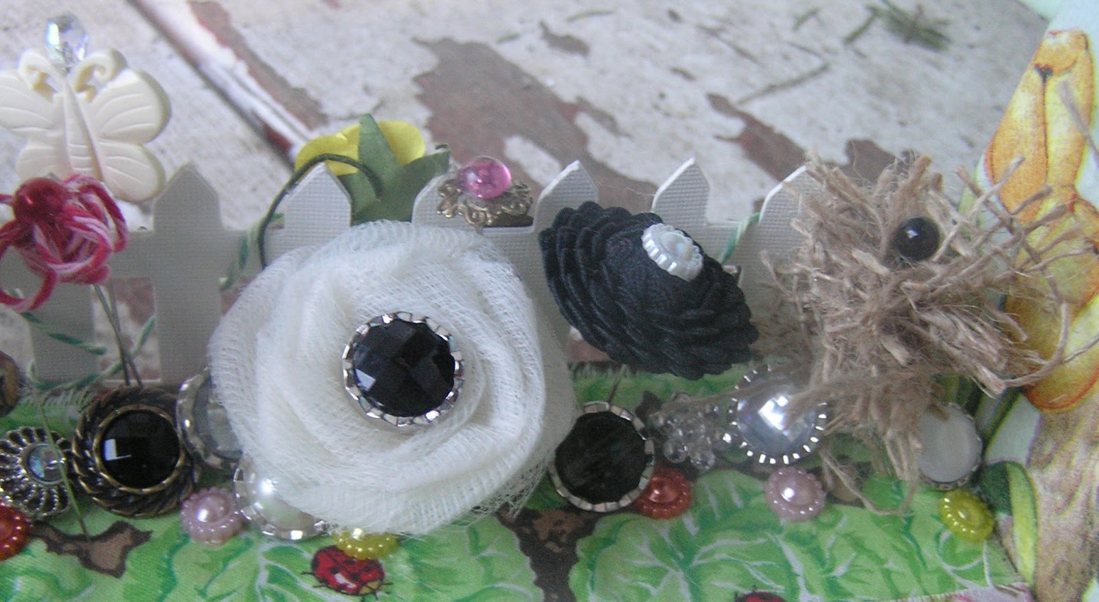 5mm crystal AB rhinestone. The sentiment I typed up using Comic Sans and Wingdings fonts.